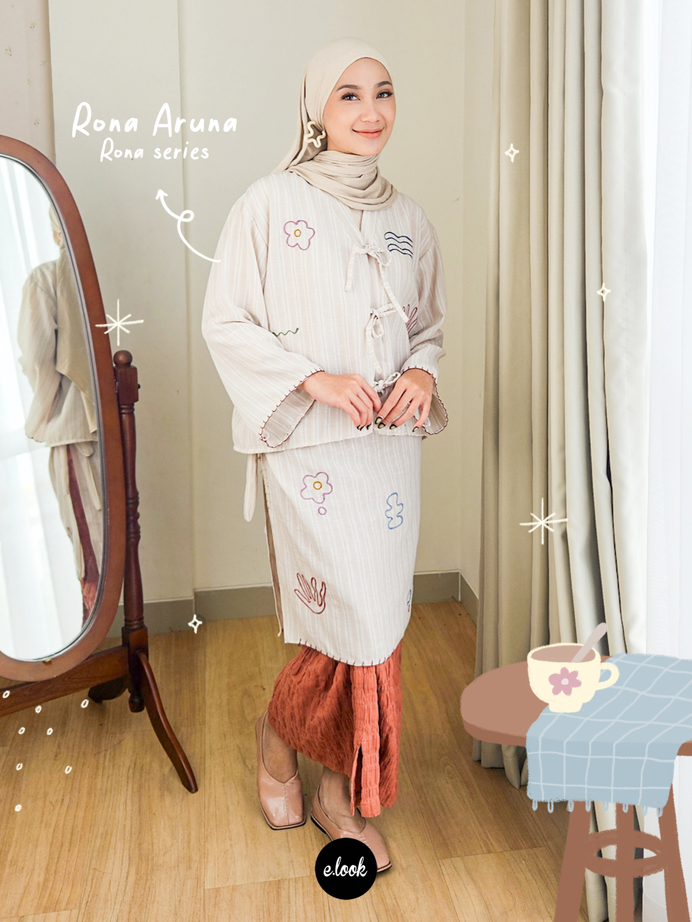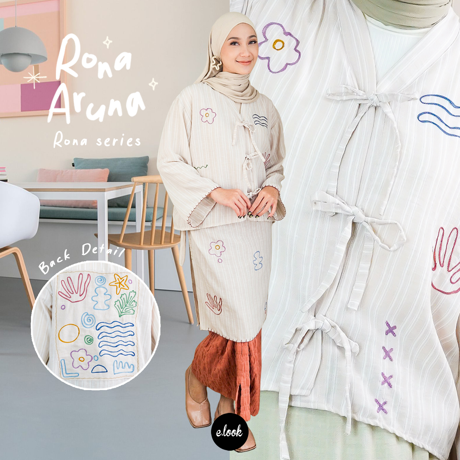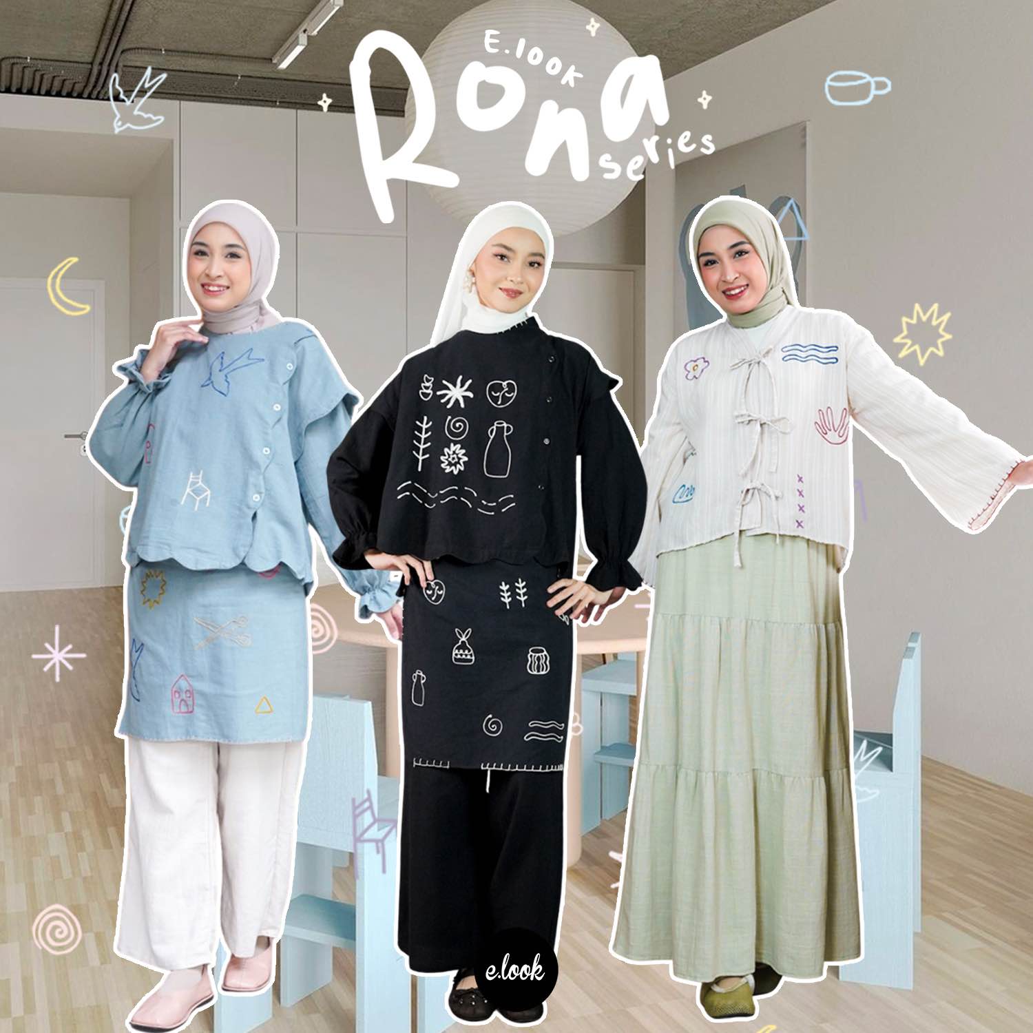 Rona Series adalah koleksi yang dibuat untuk perempuan yangsuka tampil tenang, rapi, dan effortless. Dengan desain clean dan sentuhanembroidery yang subtle, setiap piece terasa simple tapi tetap punya karakter. Cocok buat kamu yang suka look minimal tapi tetap manis dan berkelas.