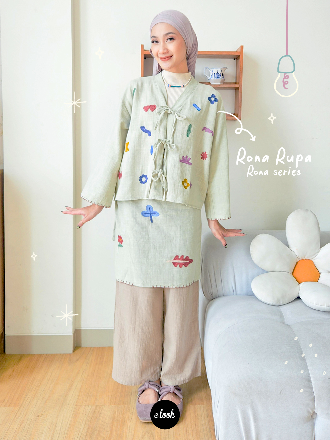 Rona Series adalah koleksi yang dibuat untuk perempuan yangsuka tampil tenang, rapi, dan effortless. Dengan desain clean dan sentuhanembroidery yang subtle, setiap piece terasa simple tapi tetap punya karakter. Cocok buat kamu yang suka look minimal tapi tetap manis dan berkelas.